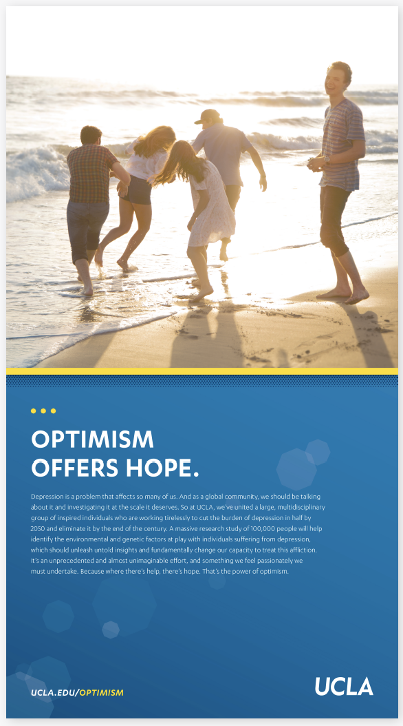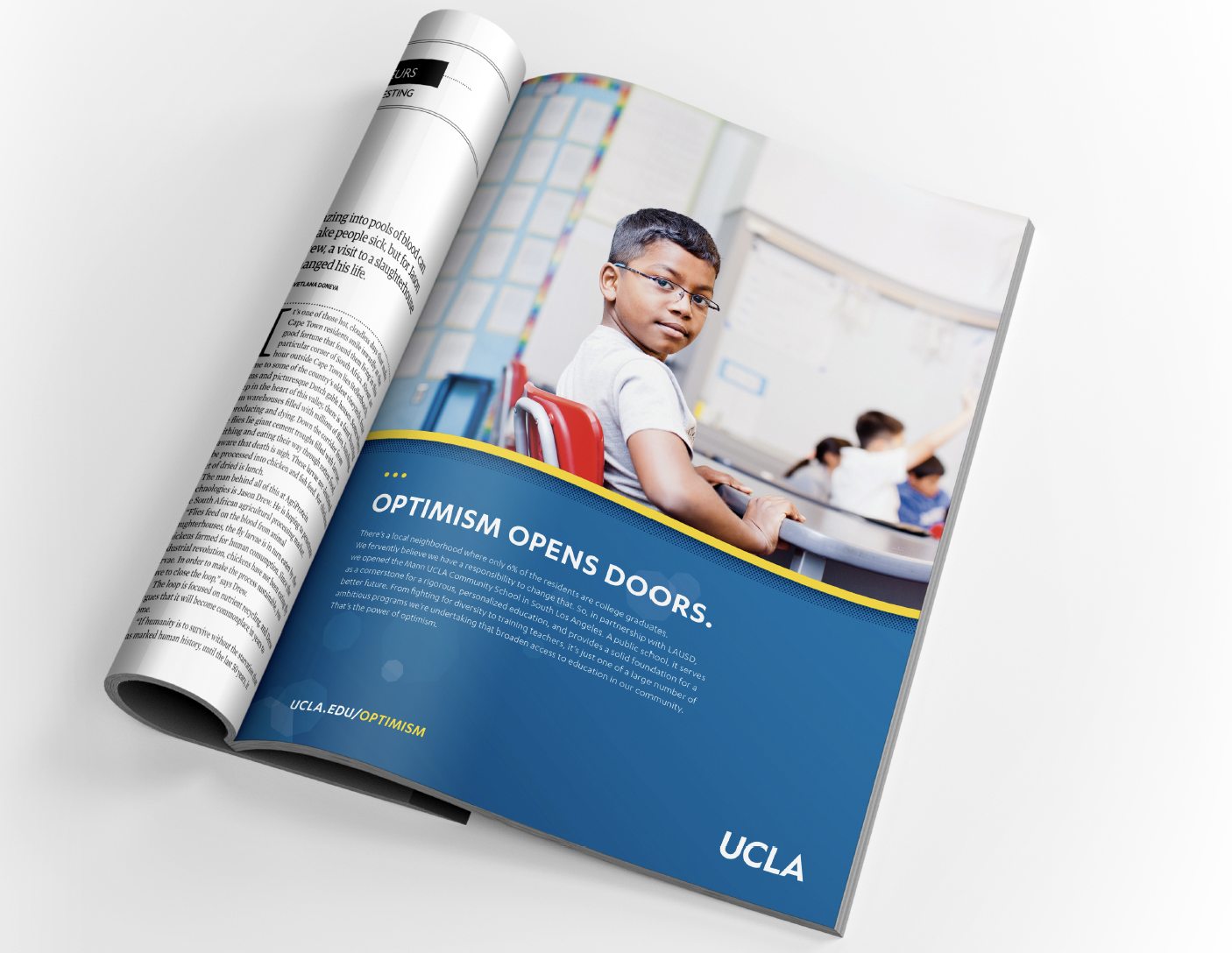 I had the honor of working on the UCLA “Optimism” campaign, which showcased the many amazing things this incredible university is doing for the world.