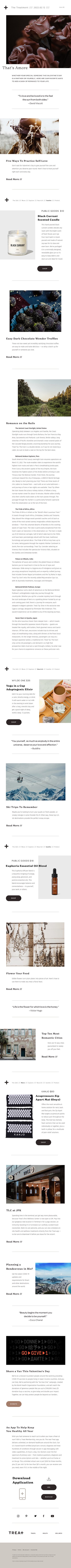 I wrote bi-weekly newsletters for Treat, a travel, health and wellness company. Named "The Treatment," each newsletter featured information, links to articles (which I also wrote) and spotlighted products we sold on our website. This is a sample, but I have many more.